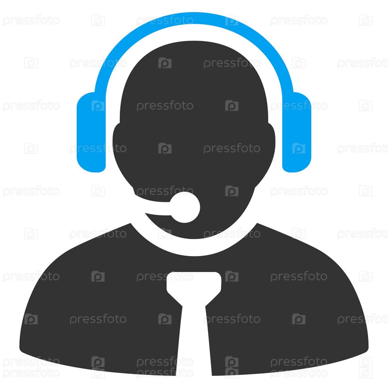 Менеджер поддержки иллюстрации значок. Стиль является биколор плоский символ, голубой и серый цвета, закругленные углы, белый фон
