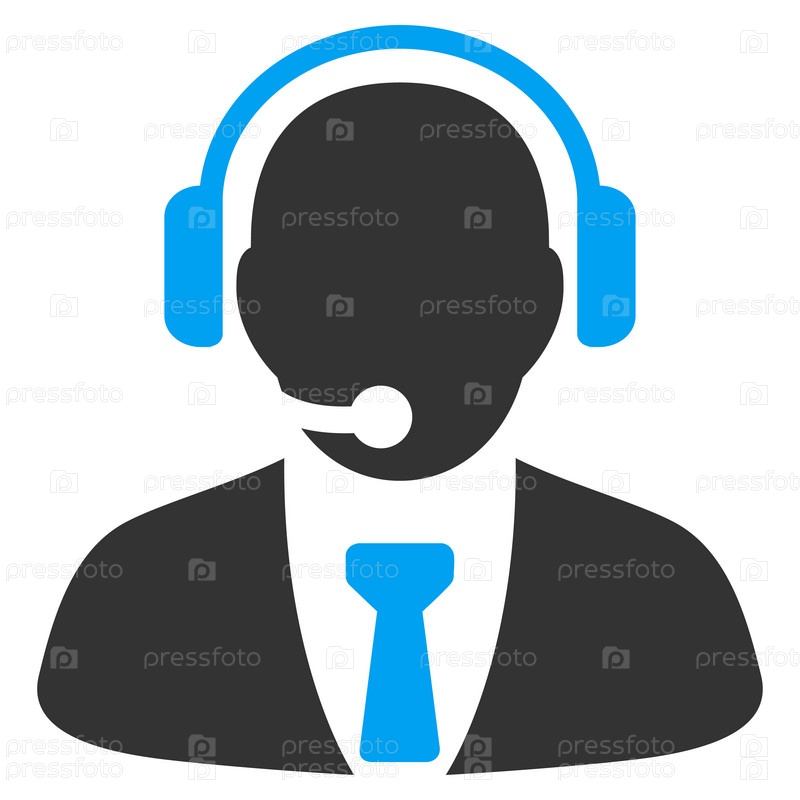 Менеджер поддержки иллюстрации значок. Стиль является биколор плоский символ, голубой и серый цвета, закругленные углы, белый фон