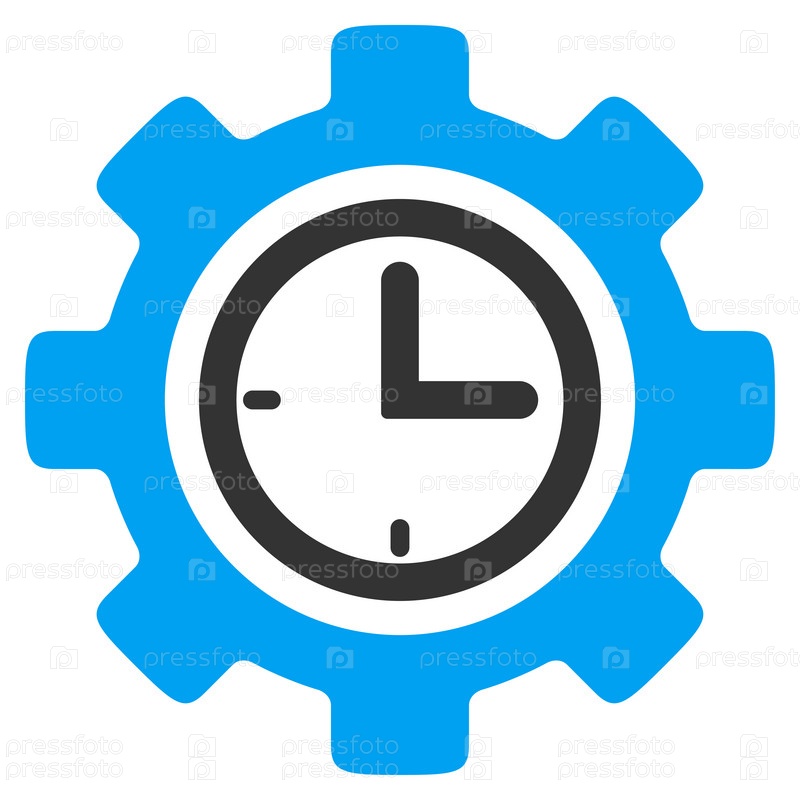 Время установки иллюстрации значок. Стиль является биколор плоский символ, голубой и серый цвета, закругленные углы, белый фон