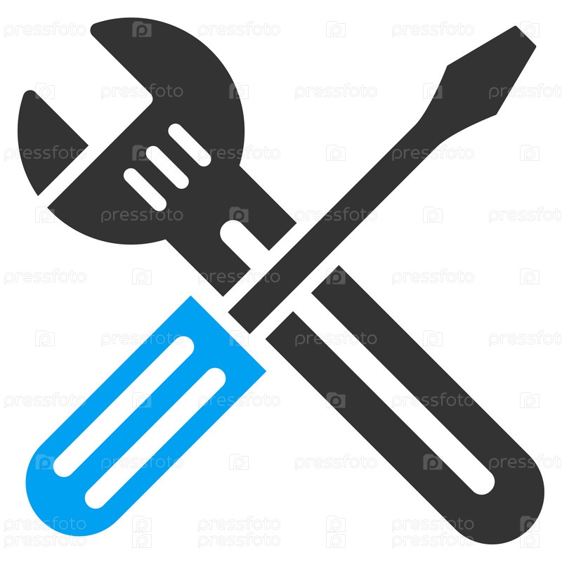 Гаечный ключ и отвертку иллюстрации значок. Стиль является биколор плоский символ, голубой и серый цвета, закругленные углы, белый фон