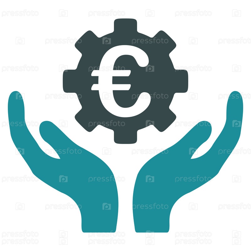 Значок иллюстрации обслуживания евро. Стиль-биколор плоский символ, мягкого синего цвета, закругленные углы, белый фон