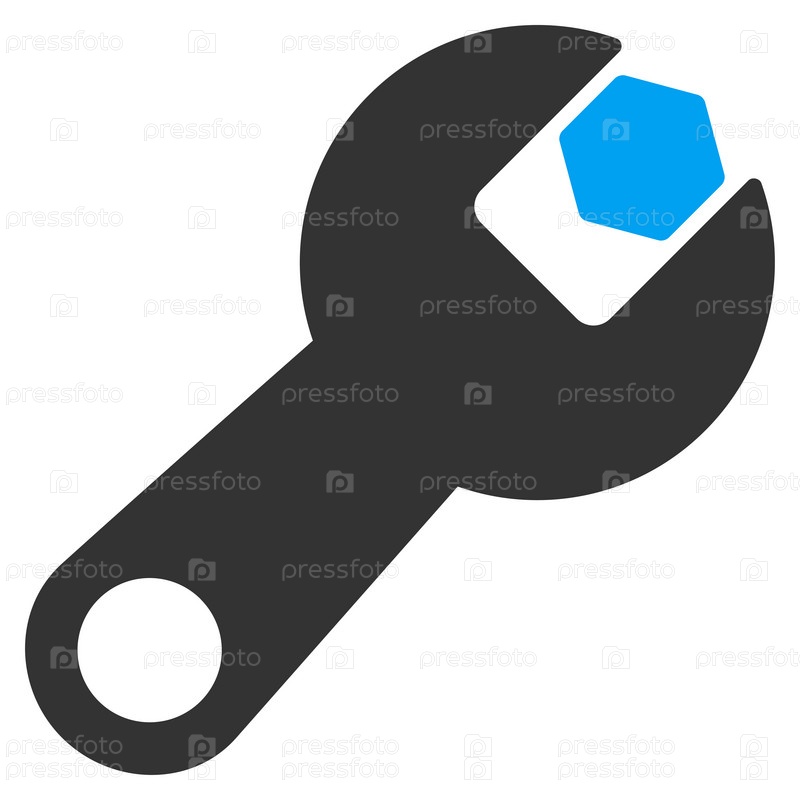 Иллюстрация значок гаечного ключа. Стиль является биколор плоский символ, голубой и серый цвета, закругленные углы, белый фон