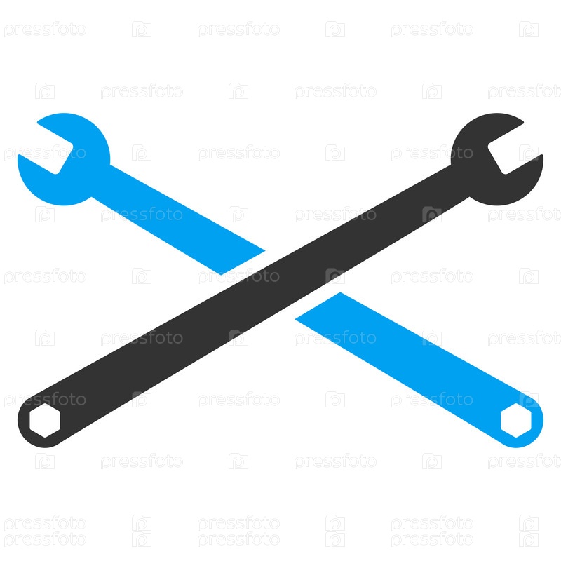 Иконка Ключи иллюстрации. Стиль является биколор плоский символ, голубой и серый цвета, закругленные углы, белый фон