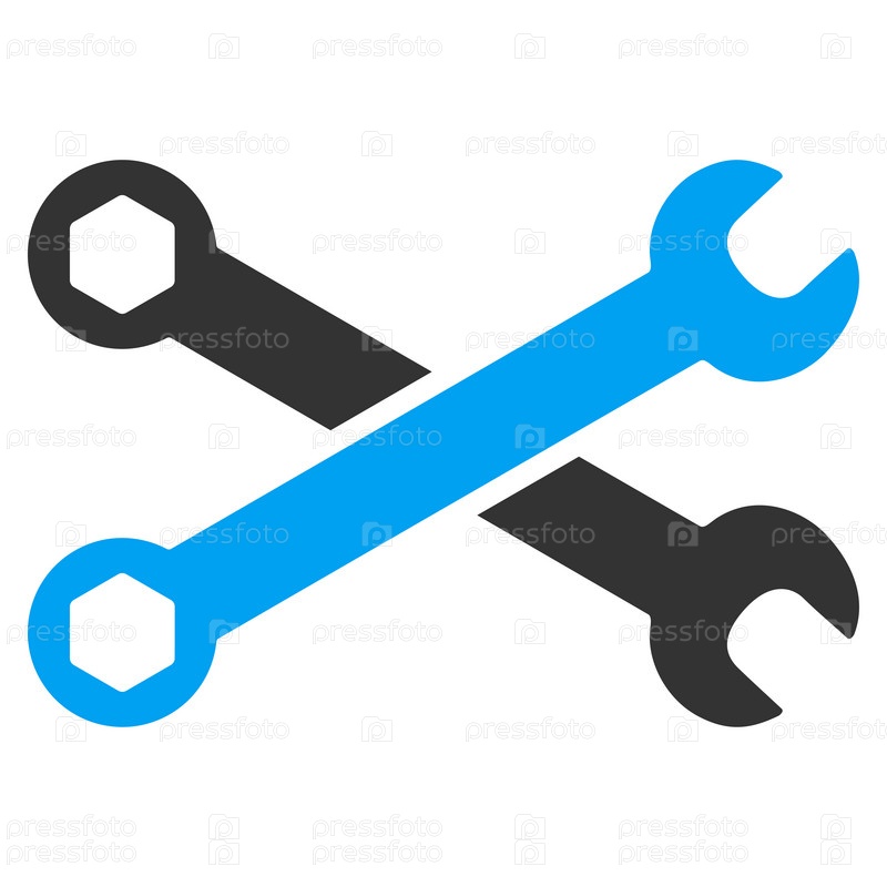 Иконка Ключи иллюстрации. Стиль является биколор плоский символ, голубой и серый цвета, закругленные углы, белый фон