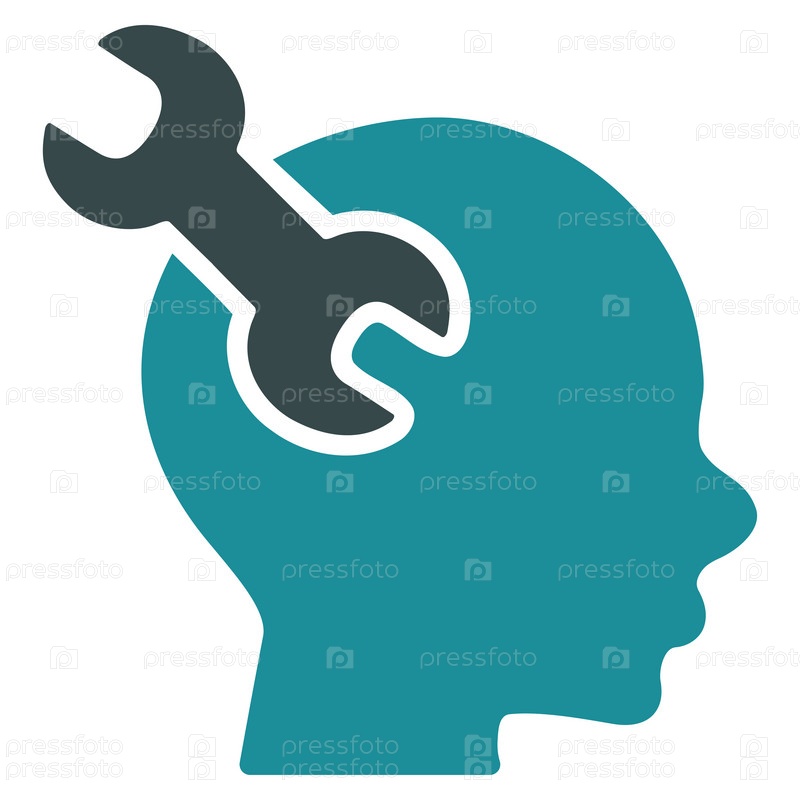 Мозг службы иллюстрации значок. Стиль-биколор плоский символ, мягкого синего цвета, закругленные углы, белый фон