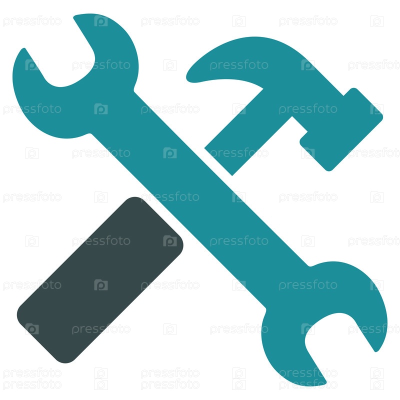 Молоток и иллюстрации инструментов. Стиль-биколор плоский символ, мягкого синего цвета, закругленные углы, белый фон