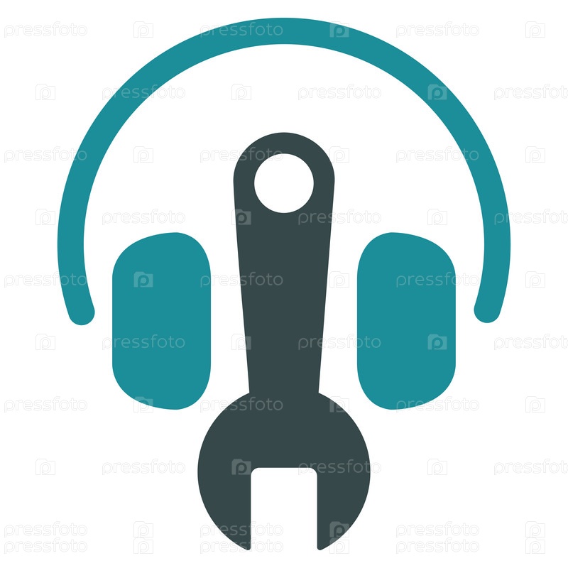 Значок наушников инструментов иллюстрации. Стиль-биколор плоский символ, мягкого синего цвета, закругленные углы, белый фон