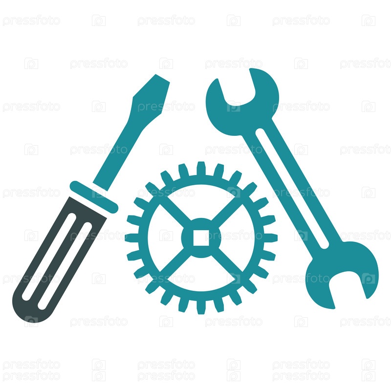 Настройка службы иллюстрации значок. Стиль-биколор плоский символ, мягкого синего цвета, закругленные углы, белый фон