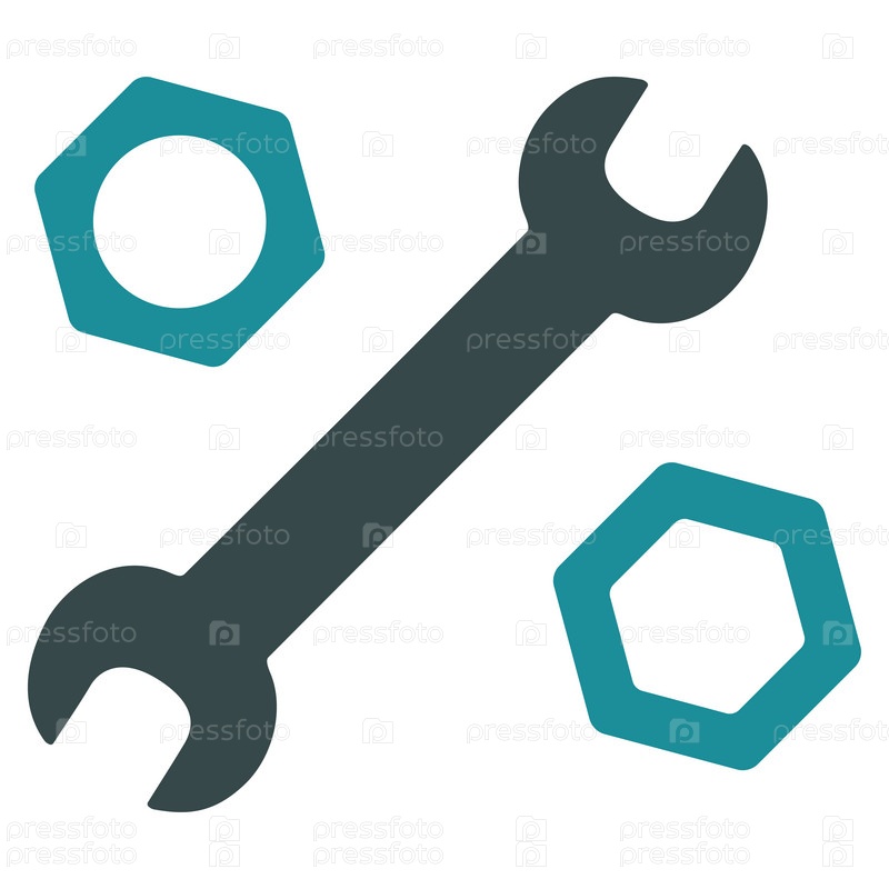 Иллюстрация значок гаечного ключа и орехи. Стиль-биколор плоский символ, мягкого синего цвета, закругленные углы, белый фон