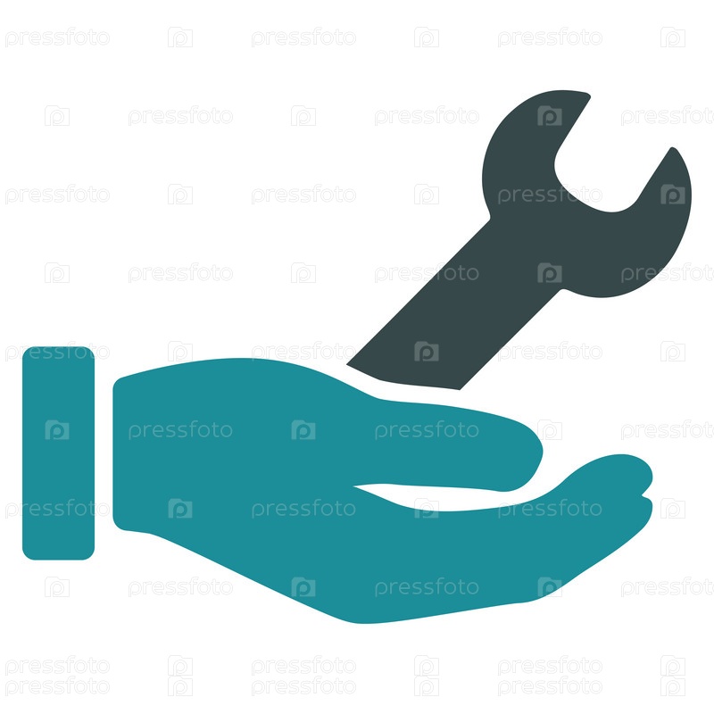 Иллюстрация значок гаечного ключа службы. Стиль-биколор плоский символ, мягкого синего цвета, закругленные углы, белый фон