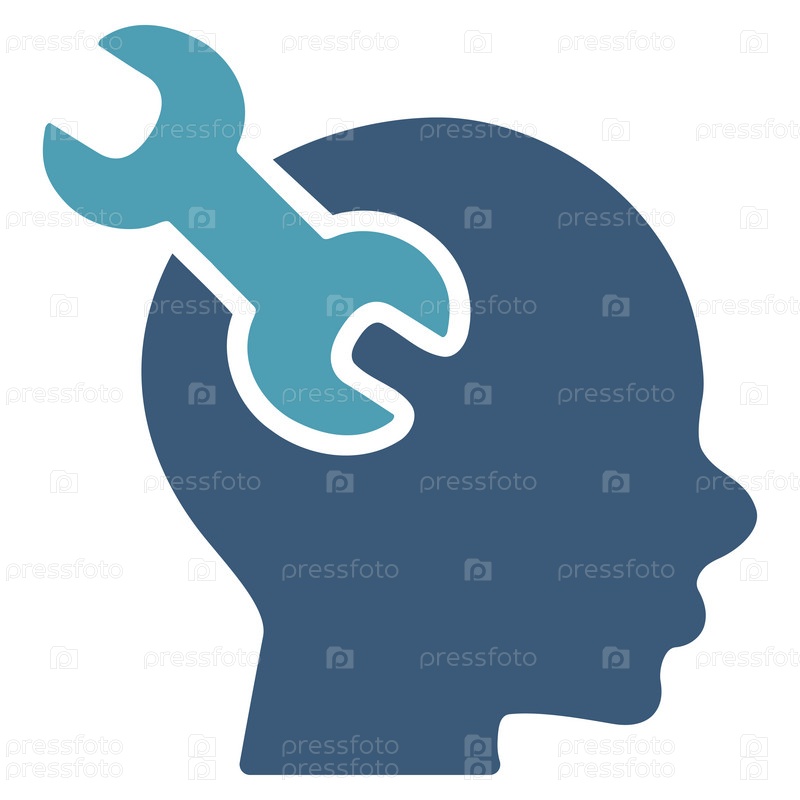 Мозг службы иллюстрации значок. Стиль является биколор плоский символ, голубой и синий цвета, закругленные углы, белый фон