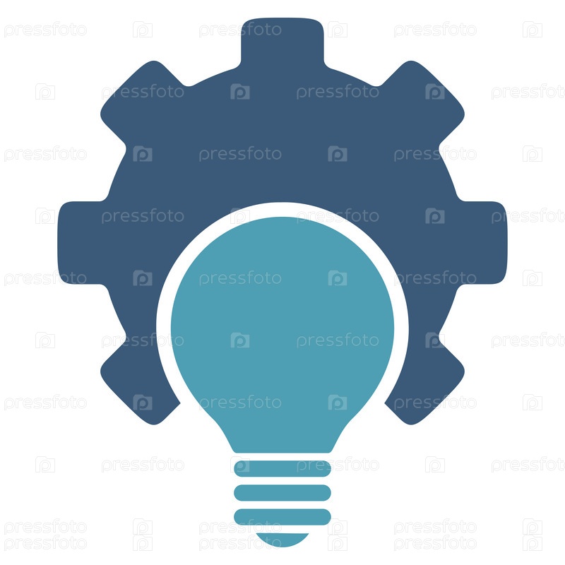 Лампа иллюстрации настройкиЗначок. Стиль является биколор плоский символ, голубой и синий цвета, закругленные углы, белый фон