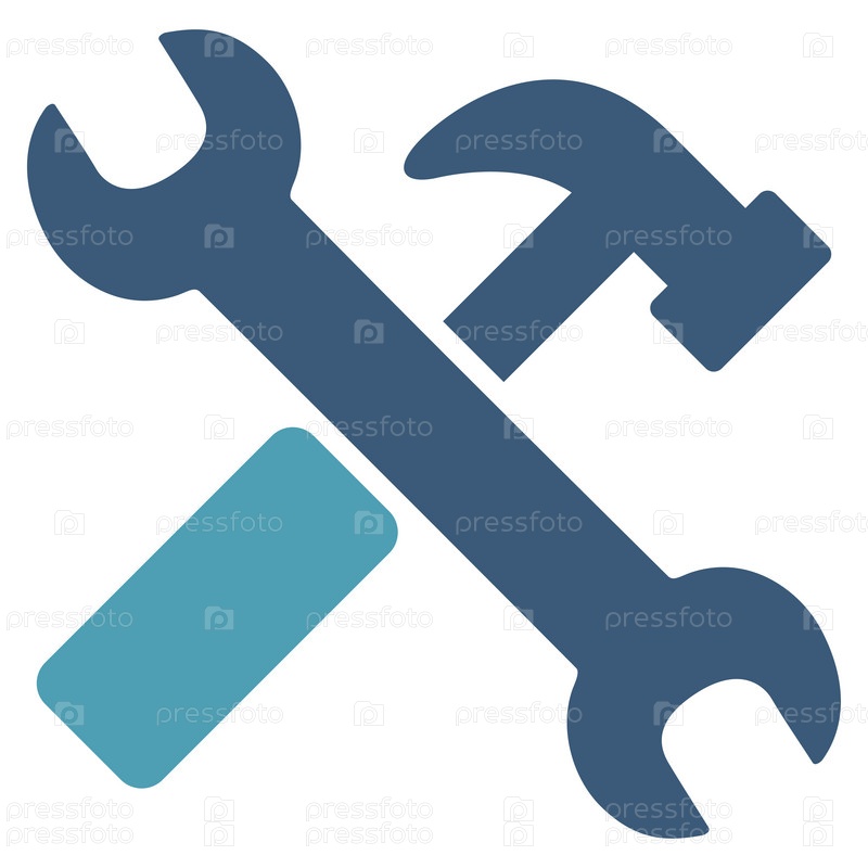 Молоток и иллюстрации инструментов. Стиль является биколор плоский символ, голубой и синий цвета, закругленные углы, белый фон