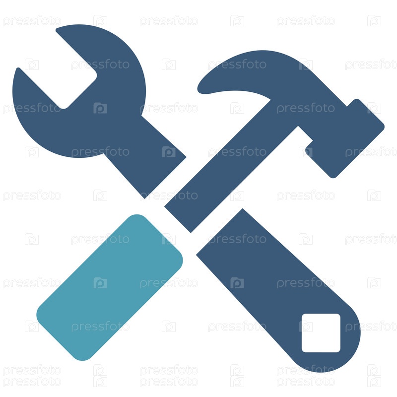Молоток и иллюстрации инструментов. Стиль является биколор плоский символ, голубой и синий цвета, закругленные углы, белый фон