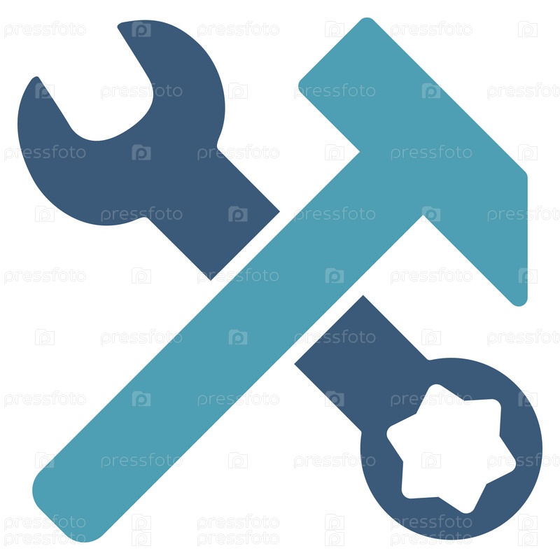Молоток и иллюстрации инструментов. Стиль является биколор плоский символ, голубой и синий цвета, закругленные углы, белый фон