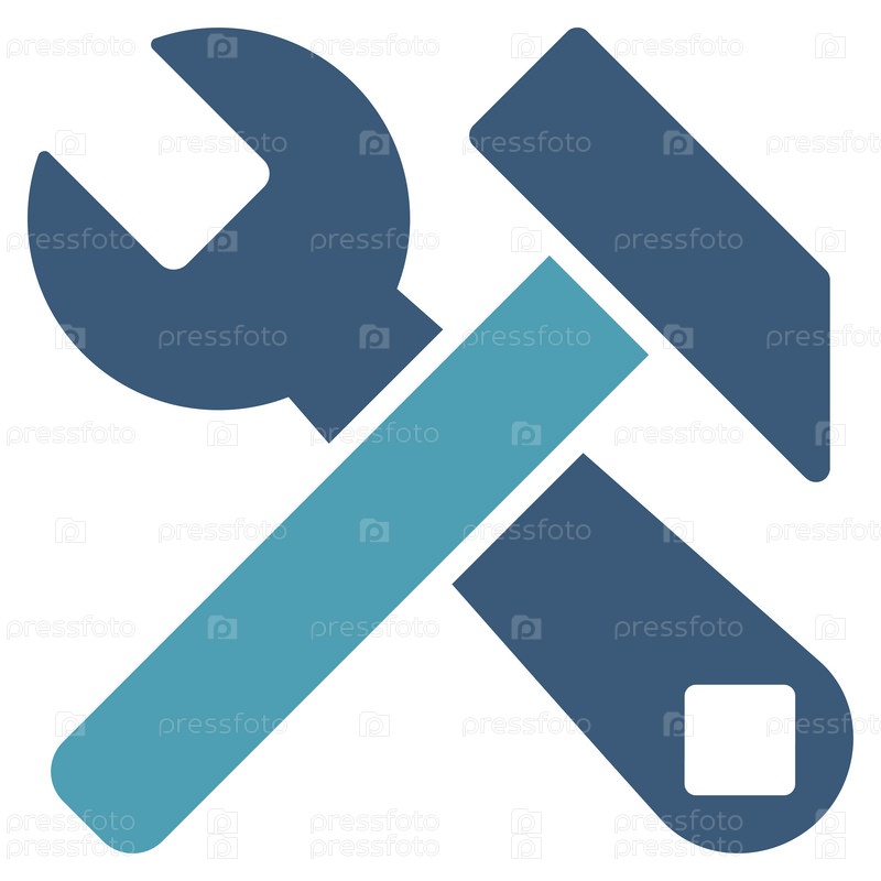 Молоток и иллюстрации инструментов. Стиль является биколор плоский символ, голубой и синий цвета, закругленные углы, белый фон
