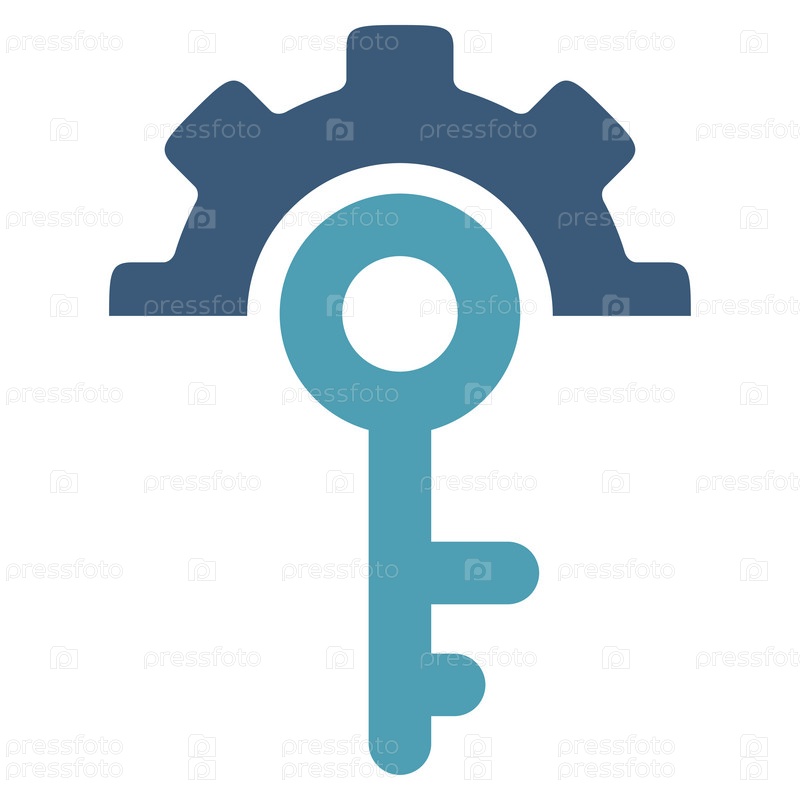 Параметры ключа иллюстрации значок. Стиль является биколор плоский символ, голубой и синий цвета, закругленные углы, белый фон