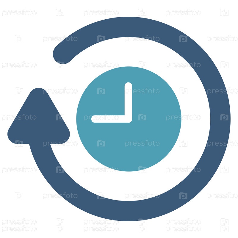 Повторите иллюстрации значок часов. Стиль является биколор плоский символ, голубой и синий цвета, закругленные углы, белый фон