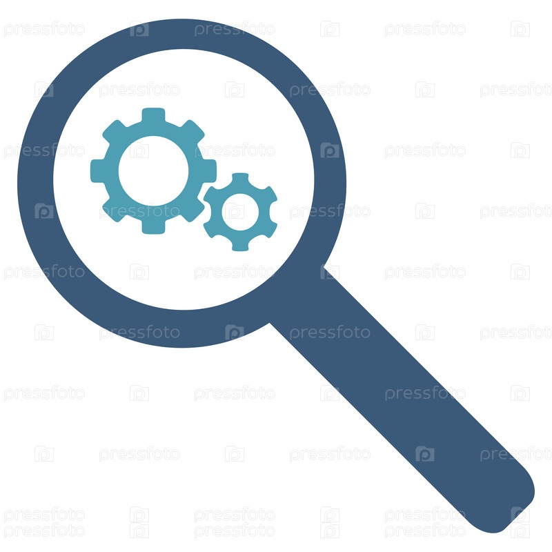 Значок поиска инструментов иллюстрации. Стиль является биколор плоский символ, голубой и синий цвета, закругленные углы, белый фон