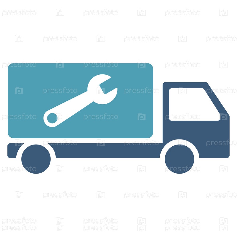 Иконка Автомобиль службы иллюстрации. Стиль является биколор плоский символ, голубой и синий цвета, закругленные углы, белый фон