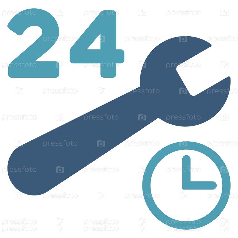 Сервисные часы иллюстрации значок. Стиль является биколор плоский символ, голубой и синий цвета, закругленные углы, белый фон