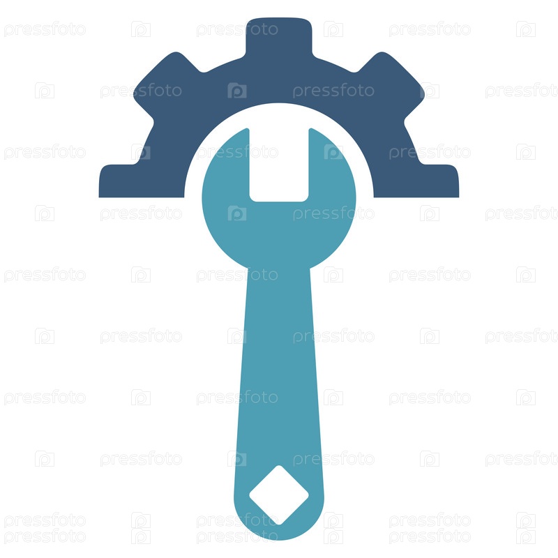 Значок службы инструментов иллюстрации. Стиль является биколор плоский символ, голубой и синий цвета, закругленные углы, белый фон