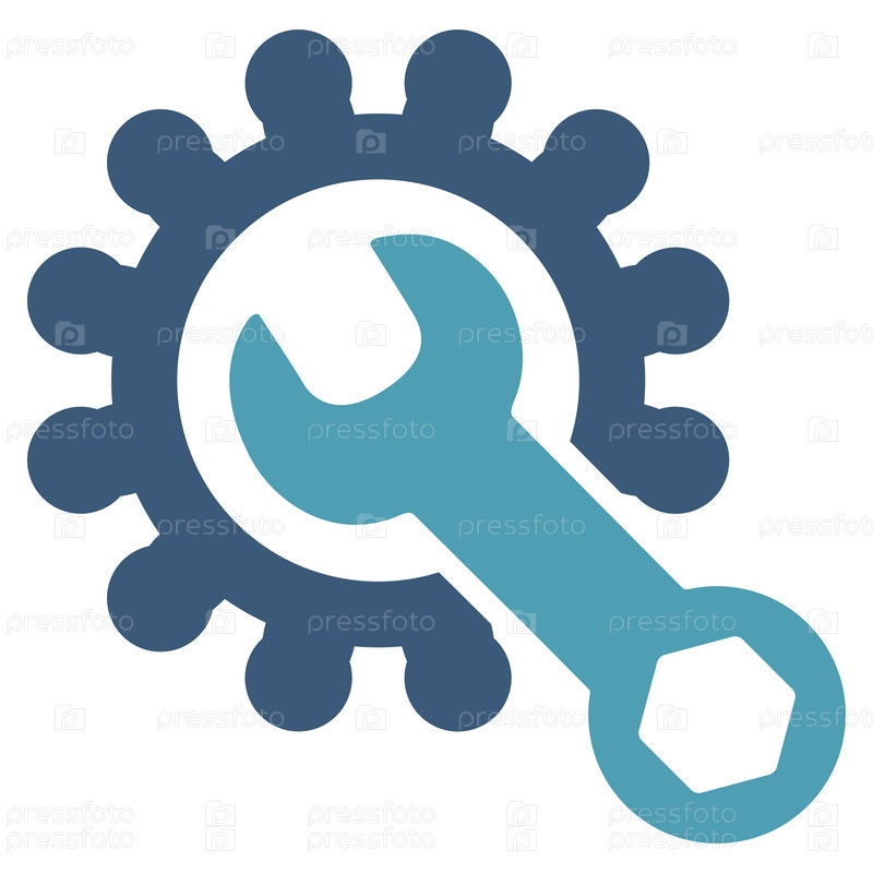 Значок службы инструментов иллюстрации. Стиль является биколор плоский символ, голубой и синий цвета, закругленные углы, белый фон