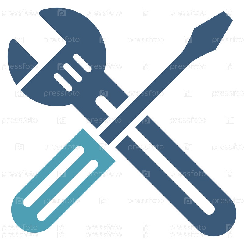 Гаечный ключ и отвертку иллюстрации значок. Стиль является биколор плоский символ, голубой и синий цвета, закругленные углы, белый фон