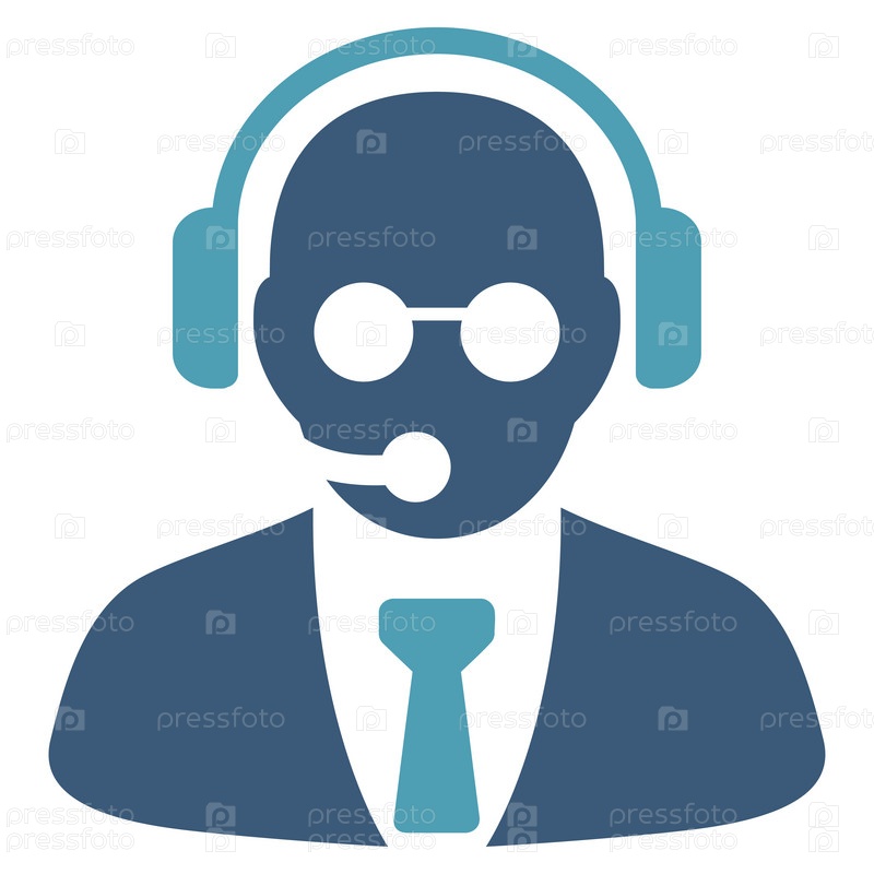 Менеджер поддержки иллюстрации значок. Стиль является биколор плоский символ, голубой и синий цвета, закругленные углы, белый фон