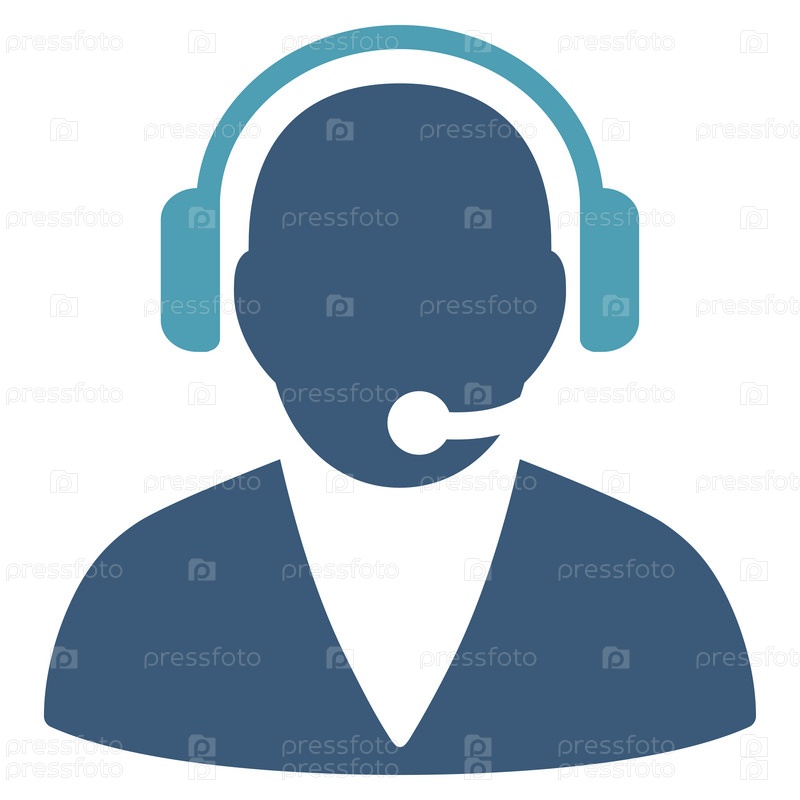 Поддержка оператора иллюстрации значок. Стиль является биколор плоский символ, голубой и синий цвета, закругленные углы, белый фон