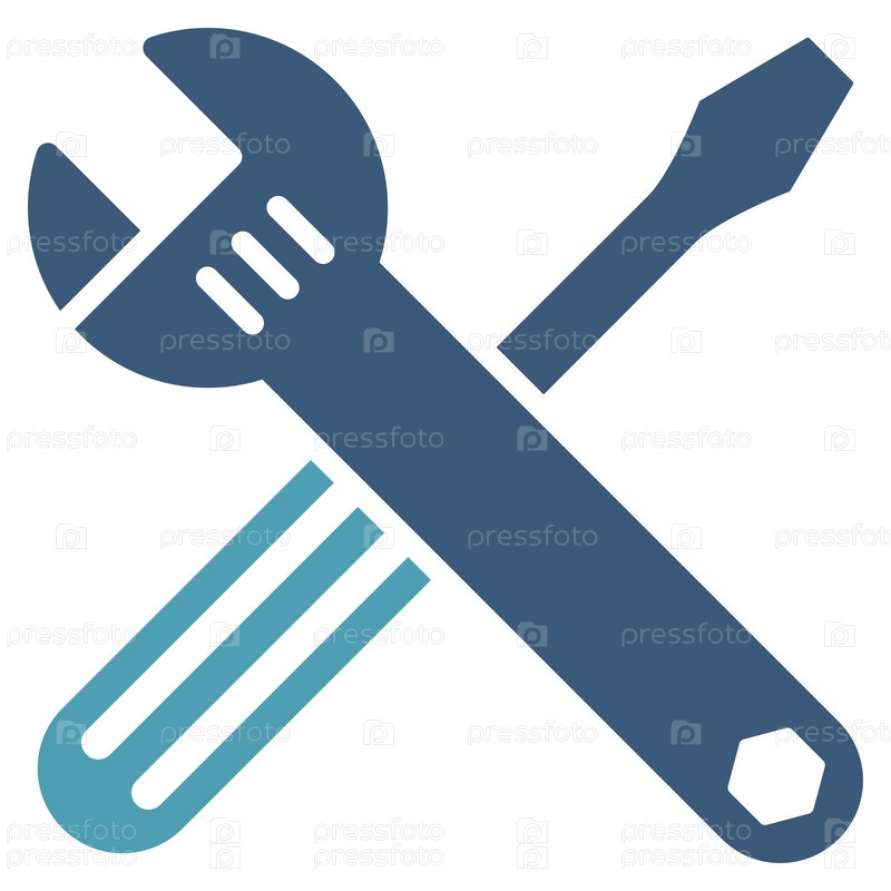 Значок инструменты иллюстрации. Стиль является биколор плоский символ, голубой и синий цвета, закругленные углы, белый фон