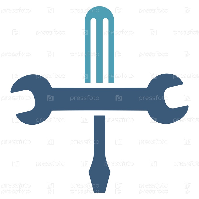 Значок инструменты иллюстрации. Стиль является биколор плоский символ, голубой и синий цвета, закругленные углы, белый фон