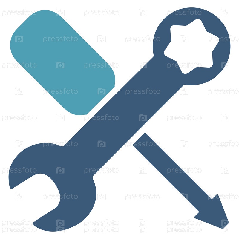 Значок инструменты иллюстрации. Стиль является биколор плоский символ, голубой и синий цвета, закругленные углы, белый фон