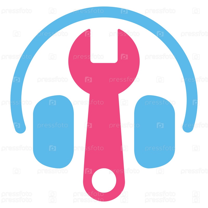 Гарнитуры значок Параметры иллюстрации. Стиль является биколор плоский символ, розовый и голубой цвета, закругленные углы, белый фон