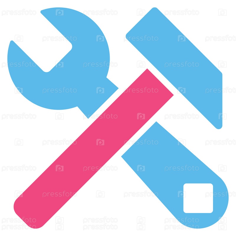 Молоток и иллюстрации инструментов. Стиль является биколор плоский символ, розовый и голубой цвета, закругленные углы, белый фон
