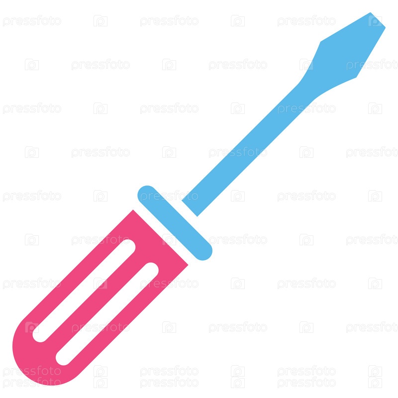 Иконка Отвертка иллюстрации. Стиль является биколор плоский символ, розовый и голубой цвета, закругленные углы, белый фон