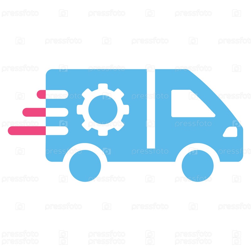 Иконка Автомобиль службы иллюстрации. Стиль является биколор плоский символ, розовый и голубой цвета, закругленные углы, белый фон