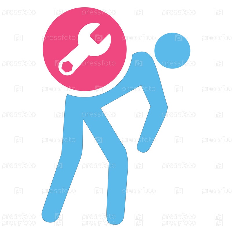 Курьерская служба иллюстрации значок. Стиль является биколор плоский символ, розовый и голубой цвета, закругленные углы, белый фон
