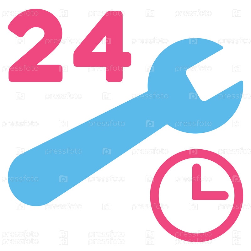Сервисные часы иллюстрации значок. Стиль является биколор плоский символ, розовый и голубой цвета, закругленные углы, белый фон