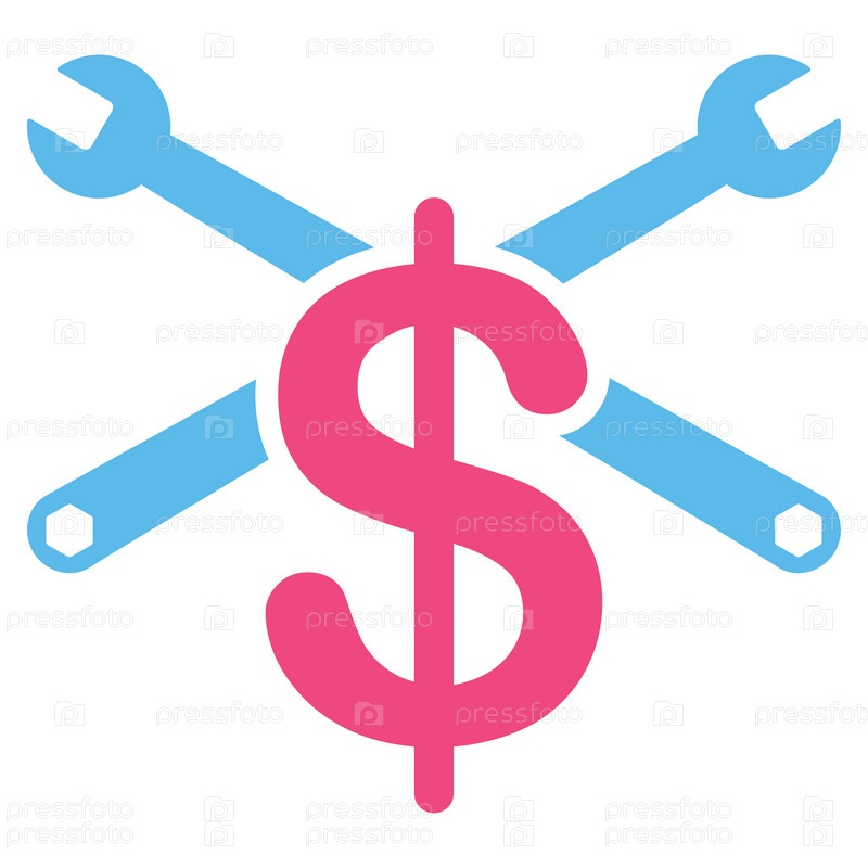Стоимость услуги иллюстрации значок. Стиль является биколор плоский символ, розовый и голубой цвета, закругленные углы, белый фон