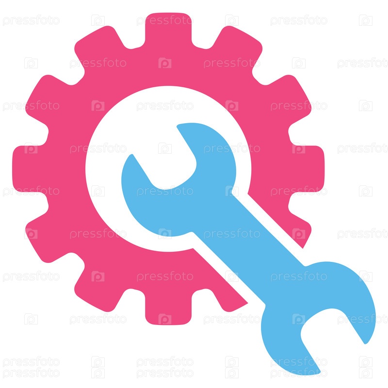 Значок службы инструментов иллюстрации. Стиль является биколор плоский символ, розовый и голубой цвета, закругленные углы, белый фон