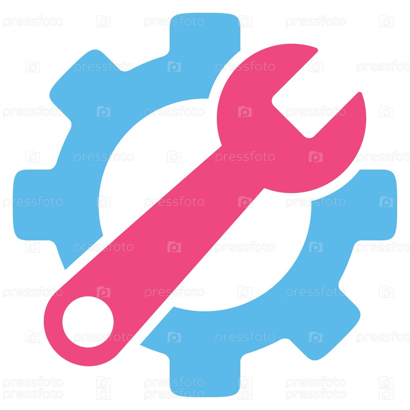 Значок службы инструментов иллюстрации. Стиль является биколор плоский символ, розовый и голубой цвета, закругленные углы, белый фон