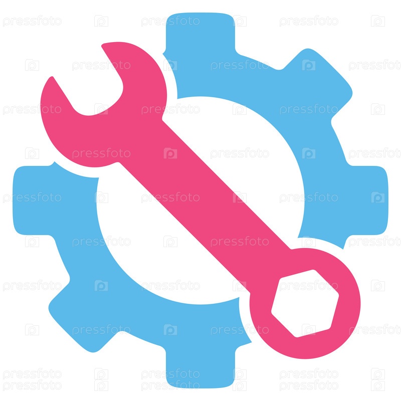 Значок службы инструментов иллюстрации. Стиль является биколор плоский символ, розовый и голубой цвета, закругленные углы, белый фон