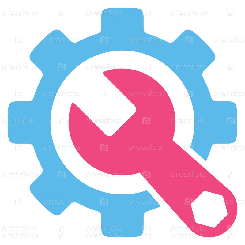 Значок службы инструментов иллюстрации. Стиль является биколор плоский символ, розовый и голубой цвета, закругленные углы, белый фон