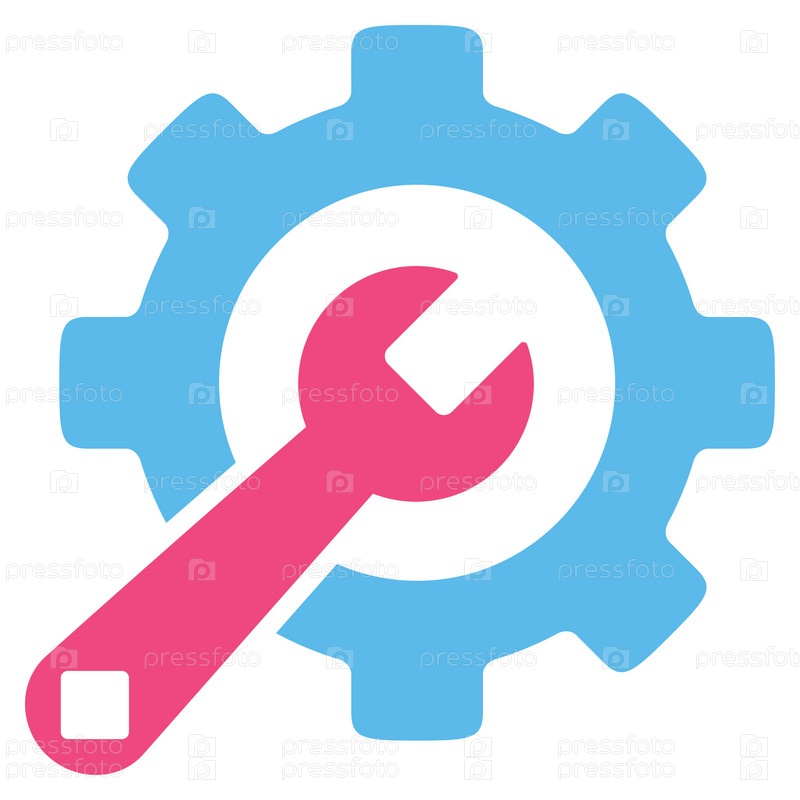 Значок службы инструментов иллюстрации. Стиль является биколор плоский символ, розовый и голубой цвета, закругленные углы, белый фон