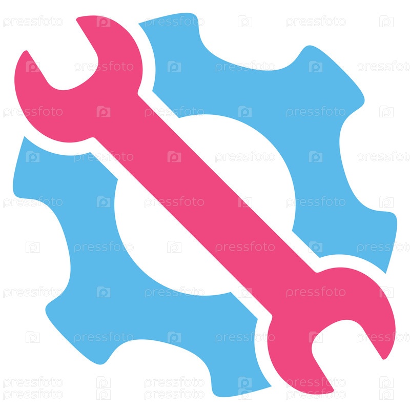 Значок службы инструментов иллюстрации. Стиль является биколор плоский символ, розовый и голубой цвета, закругленные углы, белый фон
