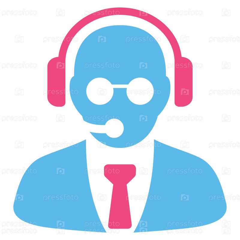 Менеджер поддержки иллюстрации значок. Стиль является биколор плоский символ, розовый и голубой цвета, закругленные углы, белый фон