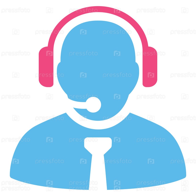 Менеджер поддержки иллюстрации значок. Стиль является биколор плоский символ, розовый и голубой цвета, закругленные углы, белый фон