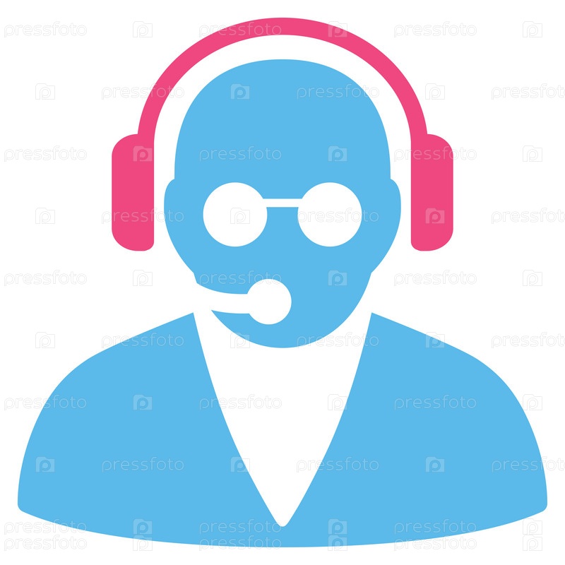 Поддержка оператора иллюстрации значок. Стиль является биколор плоский символ, розовый и голубой цвета, закругленные углы, белый фон