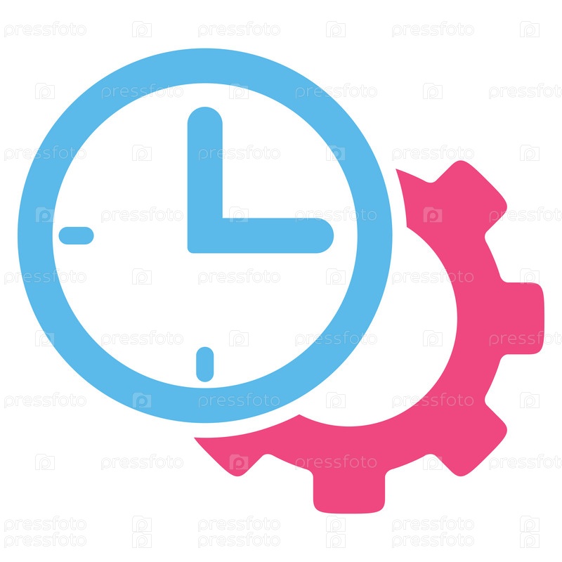 Время установки иллюстрации значок. Стиль является биколор плоский символ, розовый и голубой цвета, закругленные углы, белый фон